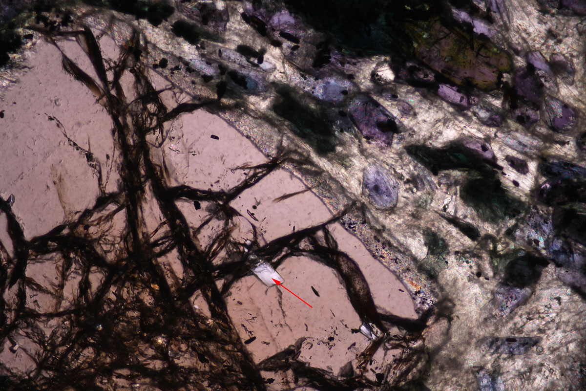 | Another inclusion in Garnet which seems to be thinner