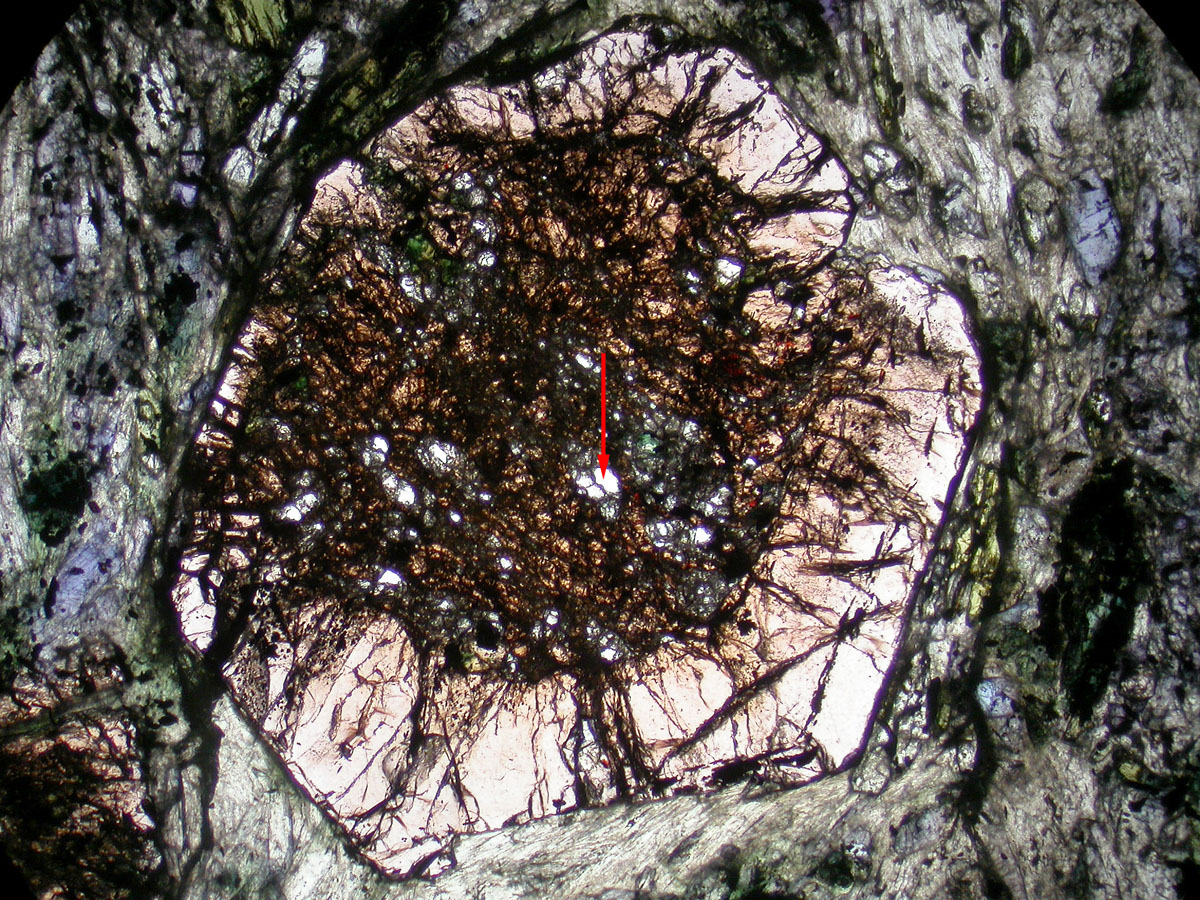 Another inclusion in the Garnets is shown in the