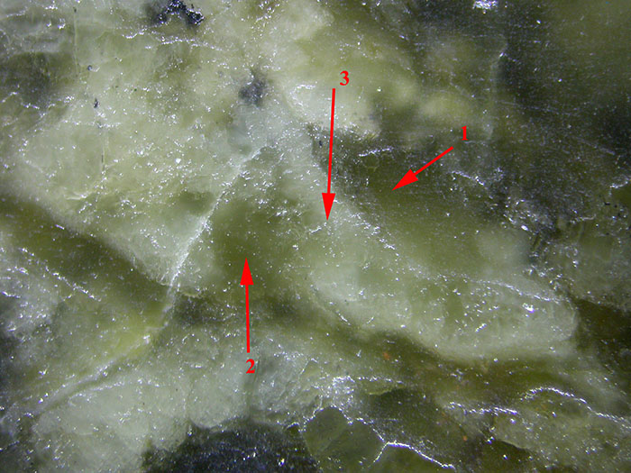 The areas 1, 2 and 3 exhibit increasingly refractive