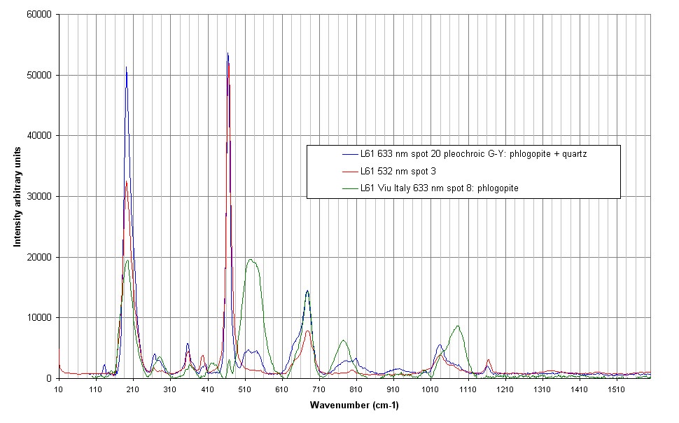 at 532 and 633 nm. About 13 different minerals have been