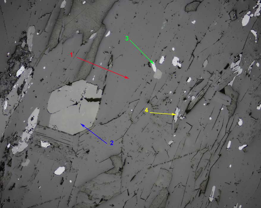of the four minerals. Lower index is mica (lower reflection coefficient)