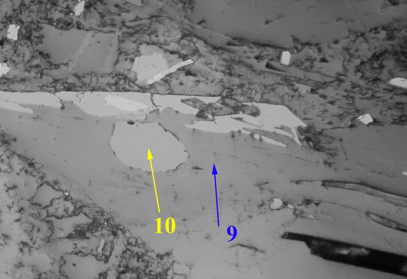 reflection. Spot 10 is epidote.