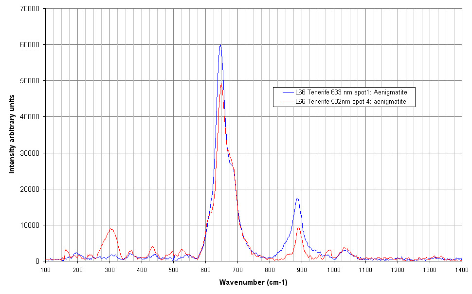 Aenigmatite Raman spectrum. (spot 4 top of page)