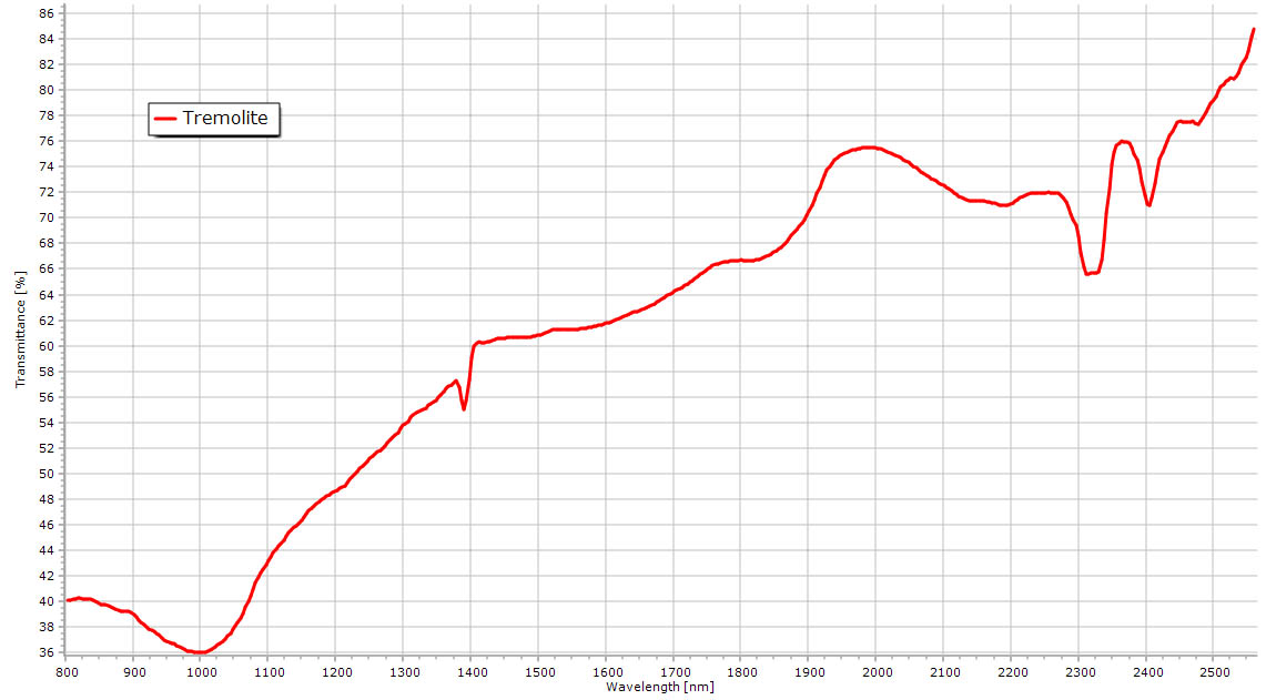 actinolite although less sharp. The peak at 1900 nm is absent. |