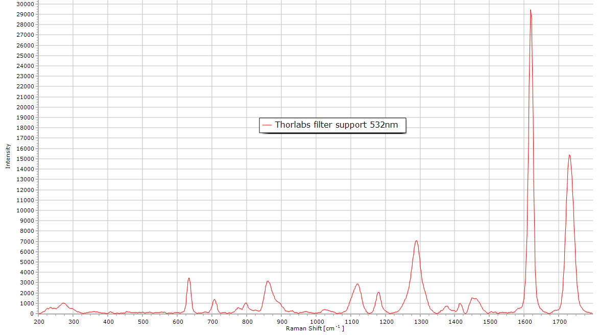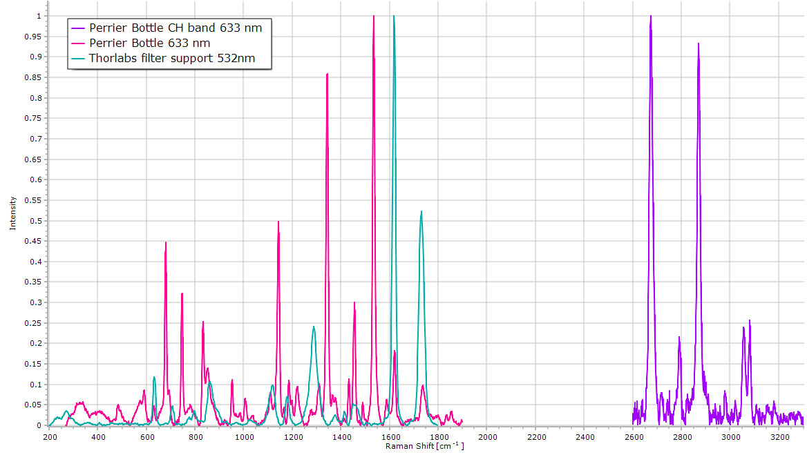 Raman spectrum of PET showing the large aromatic