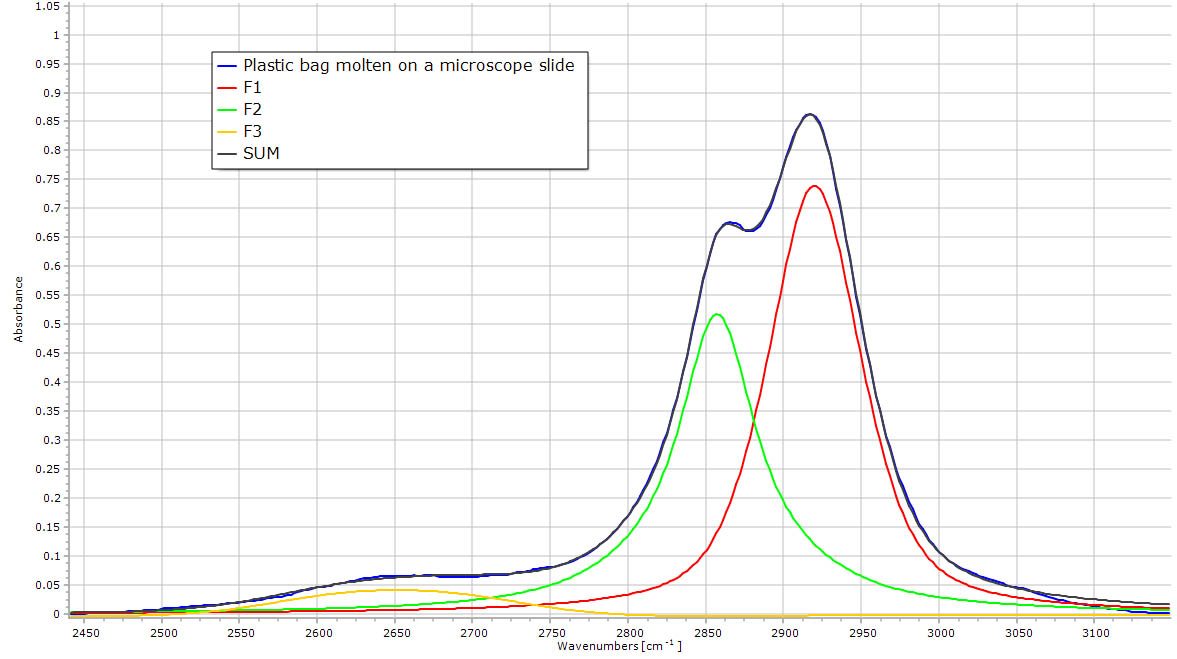 clear polyethylene bag. Deconvolution with Fityk shows the 2 main peaks