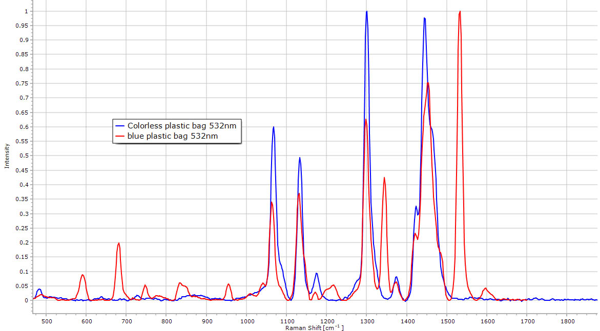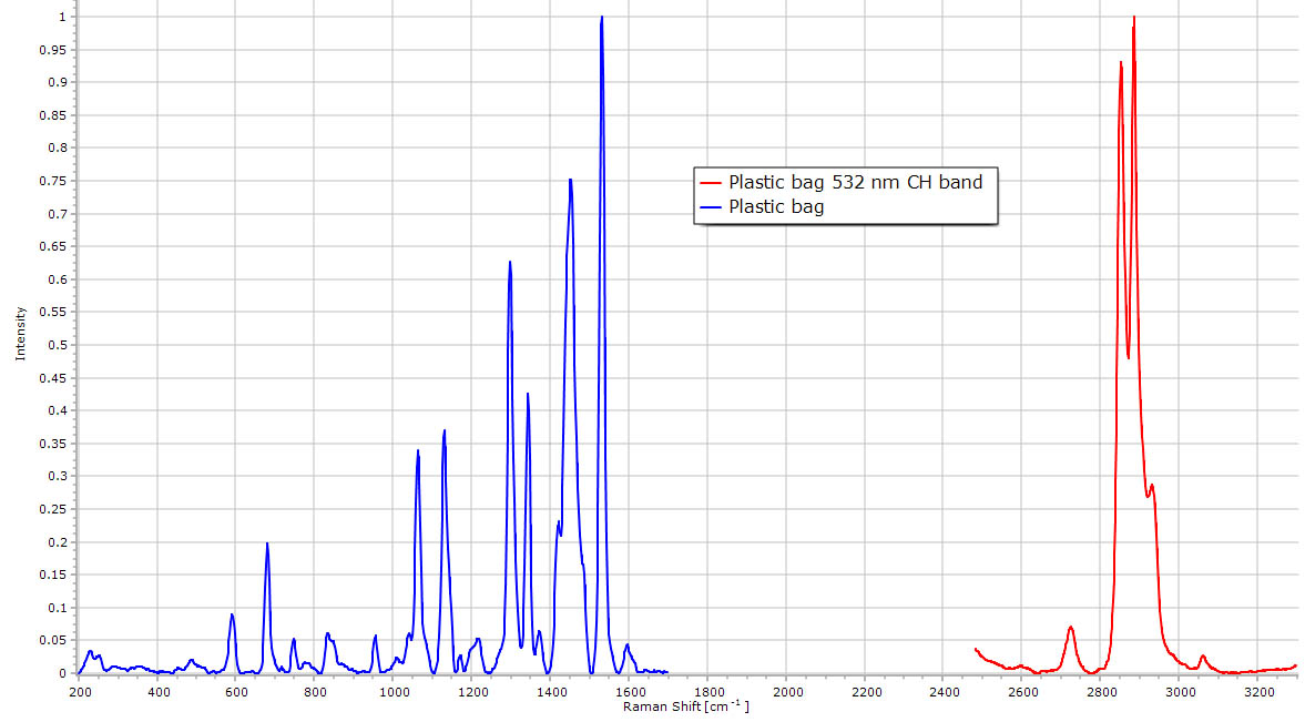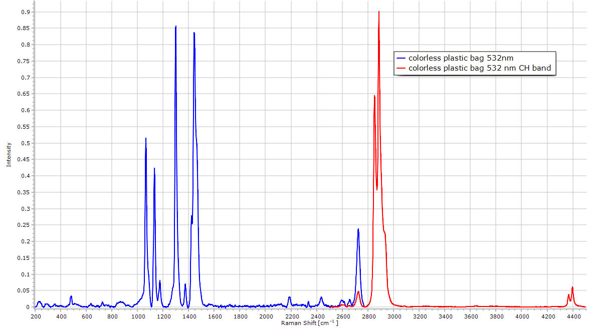 | Raman spectrum of a blue polyethylene bag.
