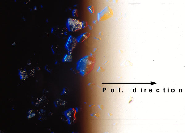 90°. The central crystal has now extraordinary index (higher) parallel to
