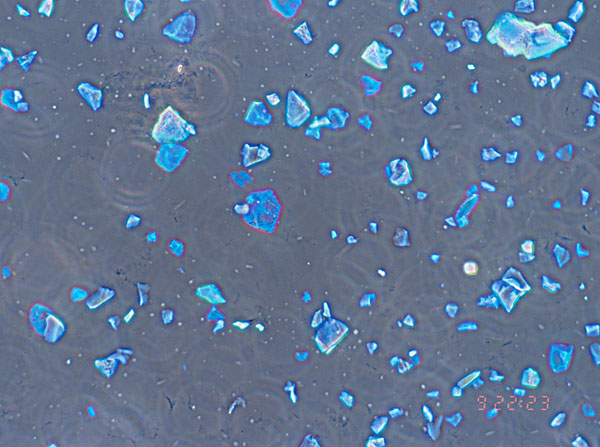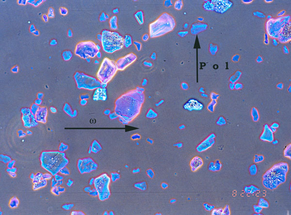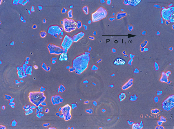 axis has a red halo (matching for the D line of sodium), other crystals in