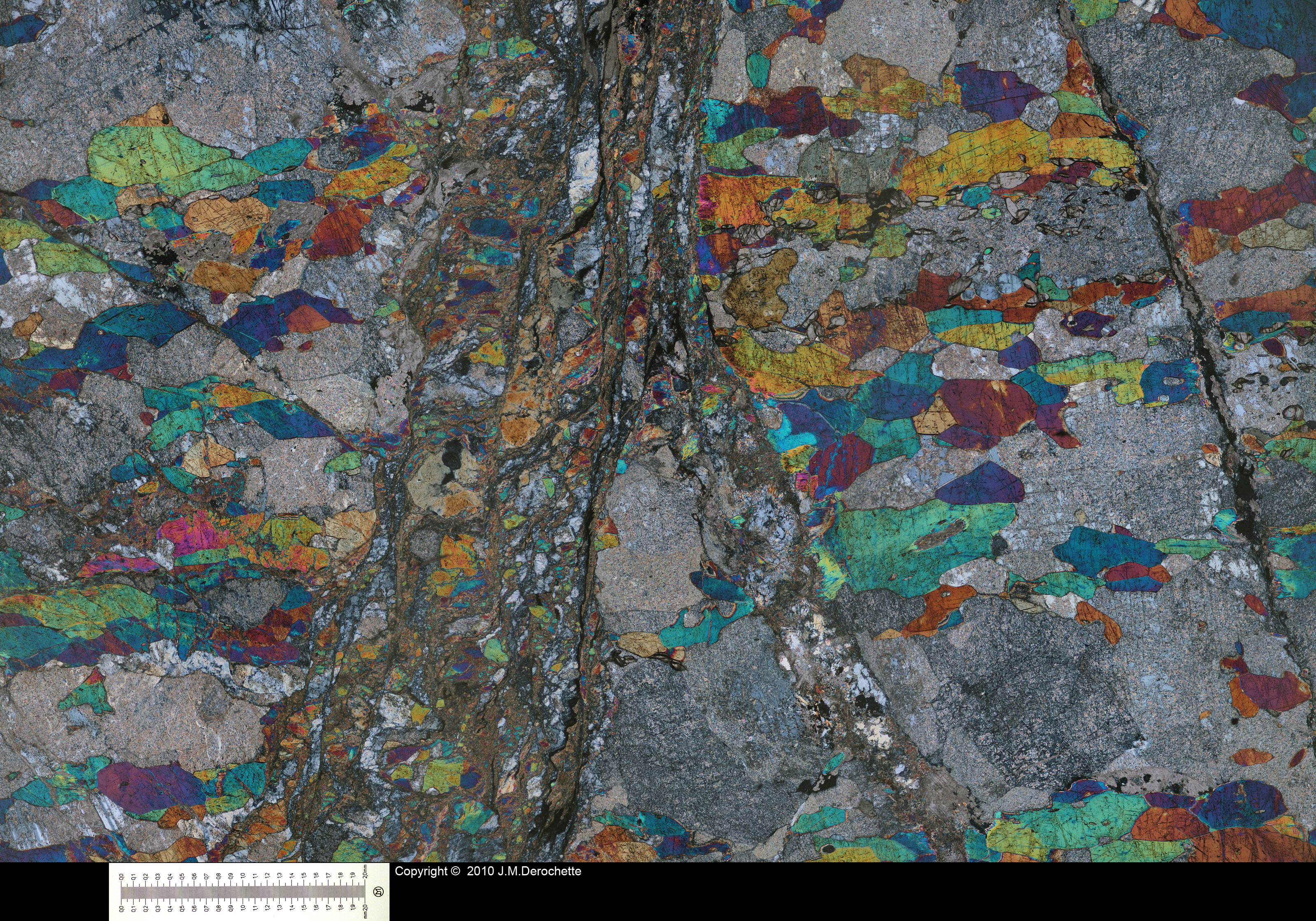 crossed polars view of the black part of the rock: the solid residue. The picture