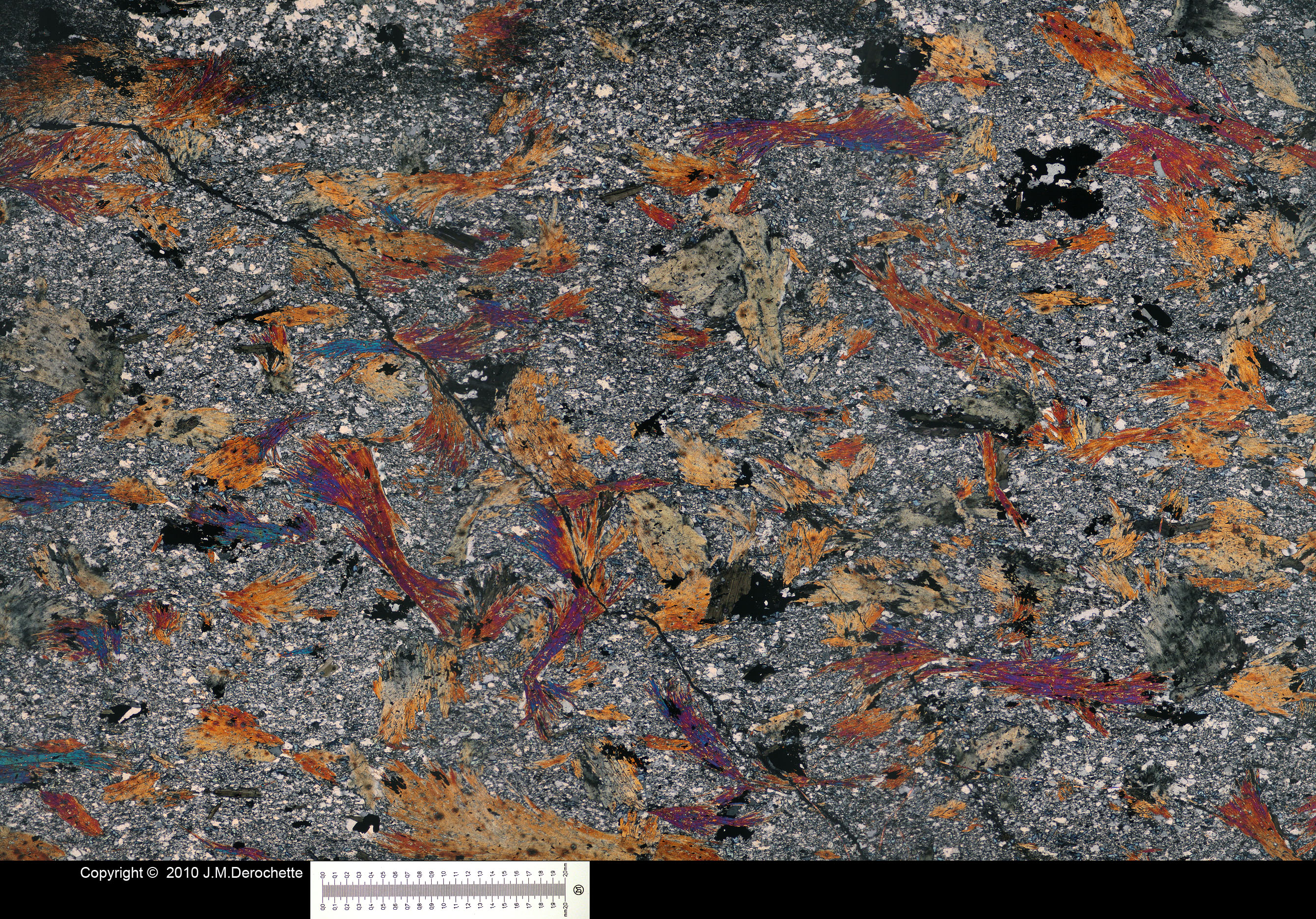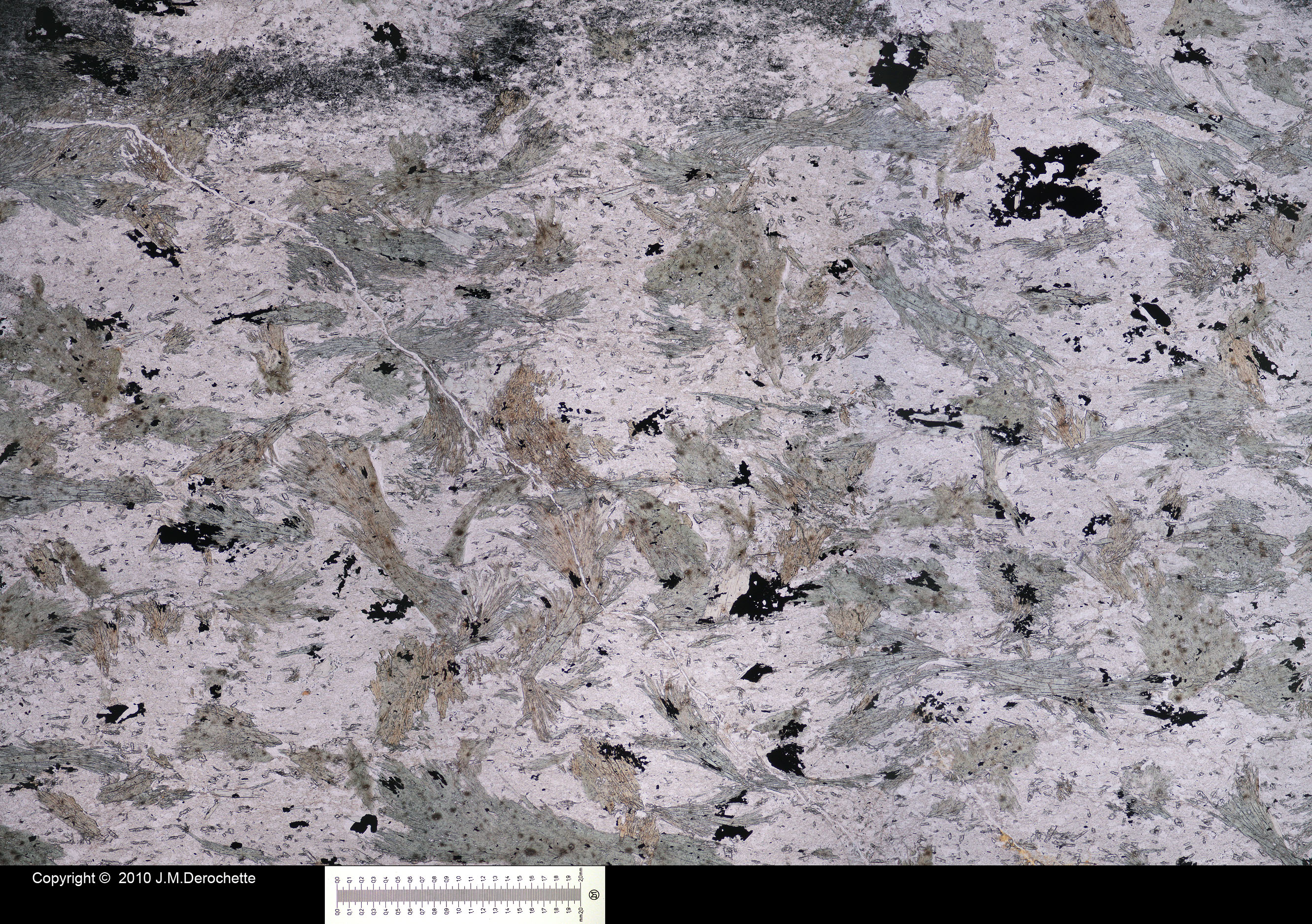Large flame shaped amphibole crystals in a matrix of quartz.