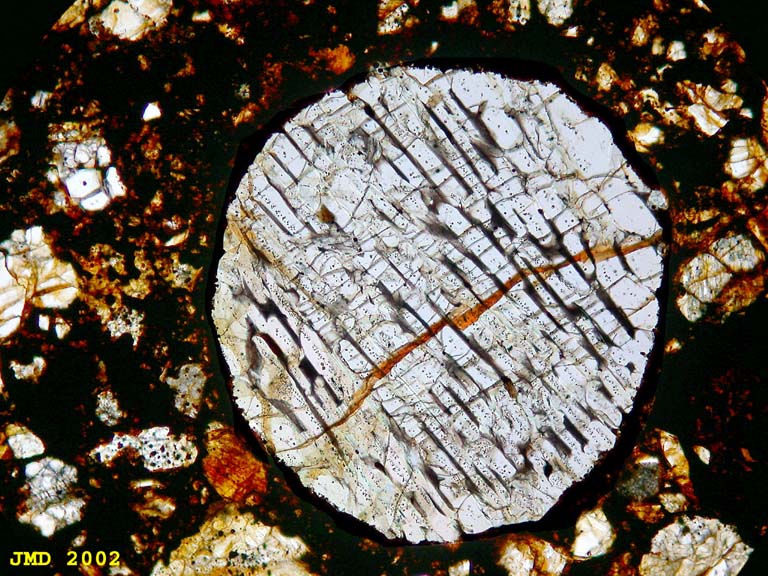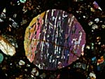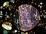 LPNA Image. Chondrule size is 950µ. The extinction of the chondrule is not exactly in phase as can be seen on the small pictures below. Extinction occurs for three positions separated only by a small angle.