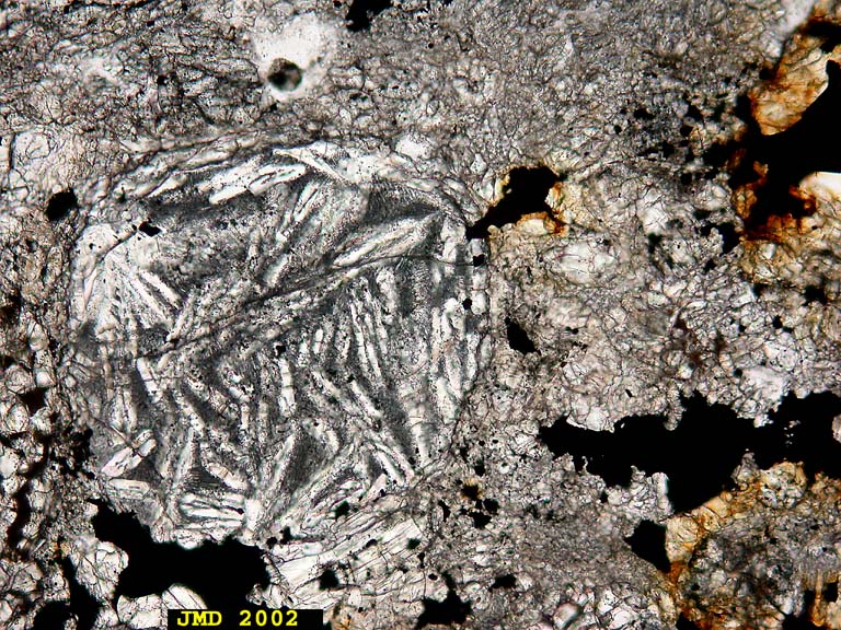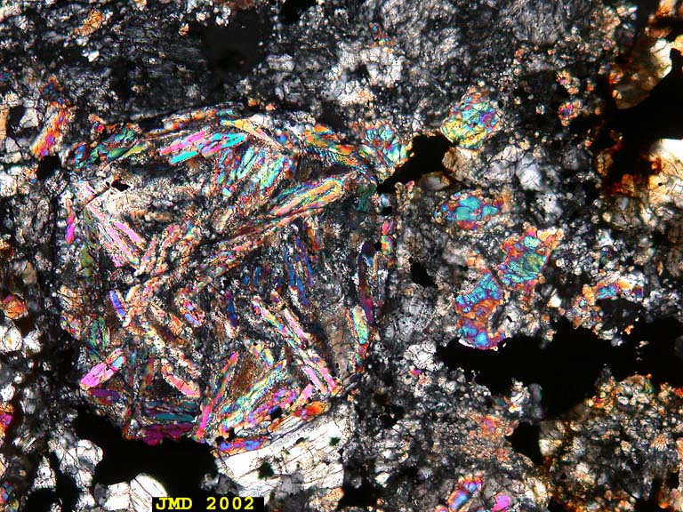 LPNA image. Chondrule dimension is around 0.6 mm. Olivine high color blades.