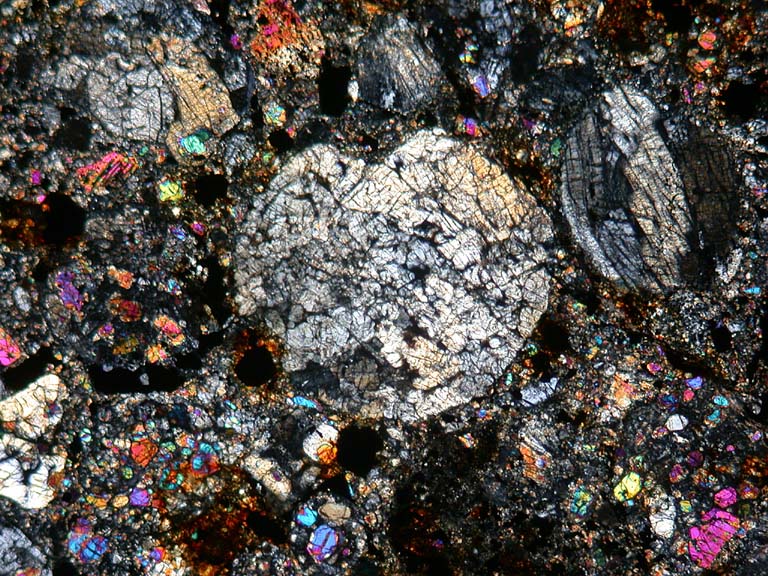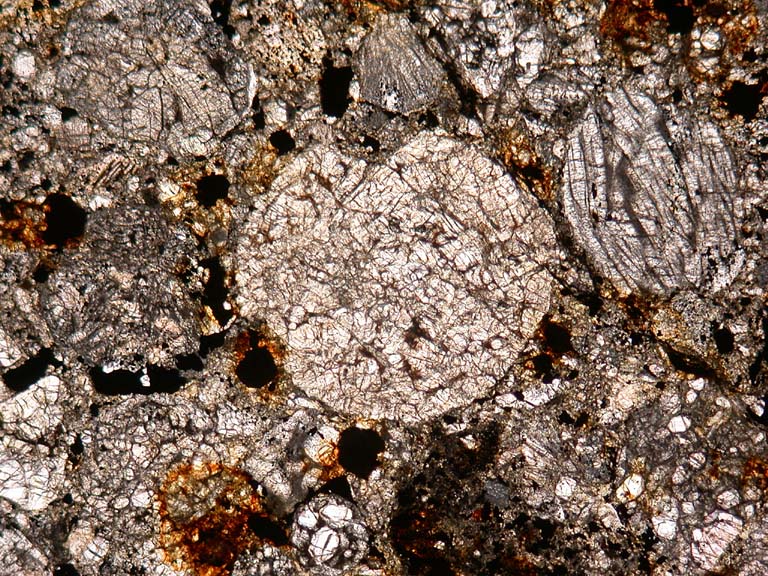 Central chondrule has a diameter of 1.25 mm. Chondrule is entirely made of low birefringence ortho-pyroxene.